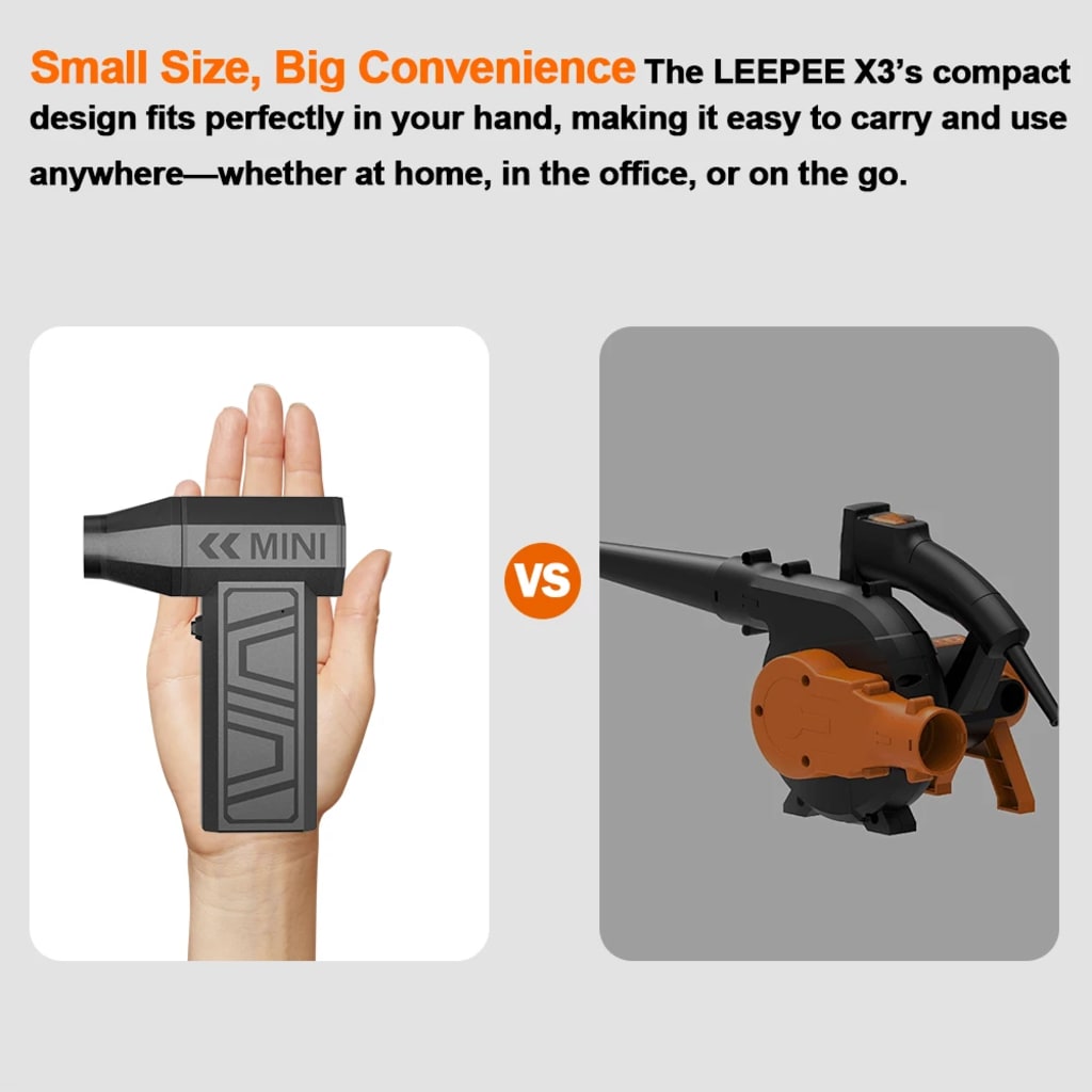 Polar Blast combines a high-speed turbo fan spinning up to 130,000 RPM with four adjustable speeds for precision airflow. Its focused design tackles snow, dust, and debris in seconds while remaining lightweight and pocket-friendly.