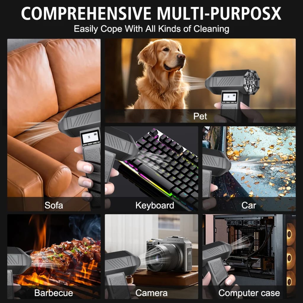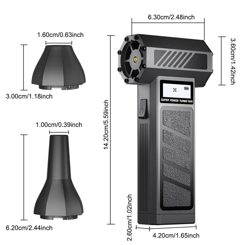 ⚡ Turbo airflow blasts away debris instantly